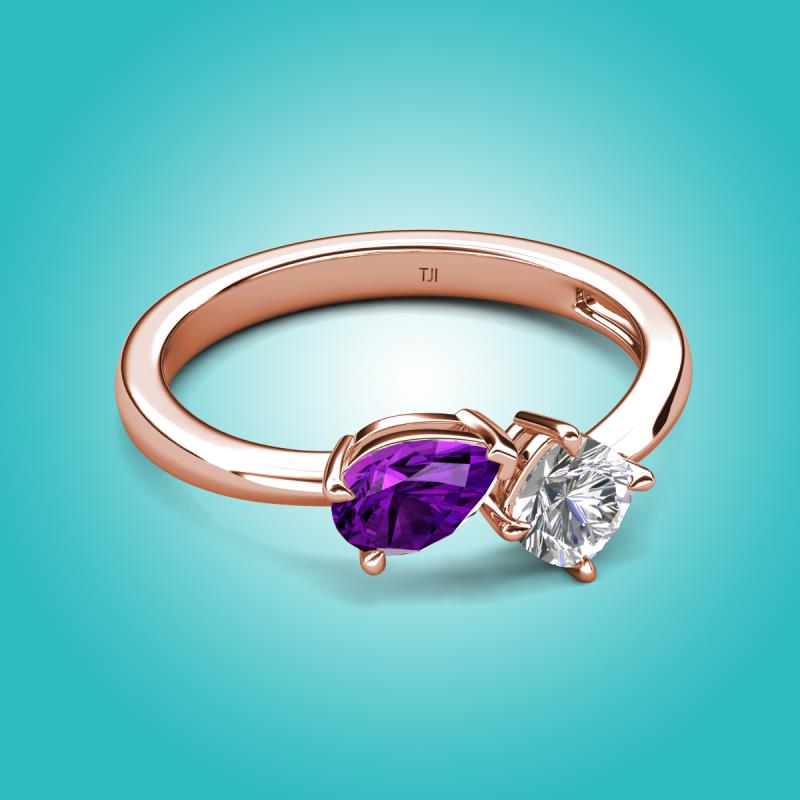 1.22 ctw Amethyst Pear Shape 7x5 mm & Moissanite Cushion Shape 5.00 mm with Prong setting Two Stone Duo Women Engagement Ring in 18K Rose Gold More Details ...