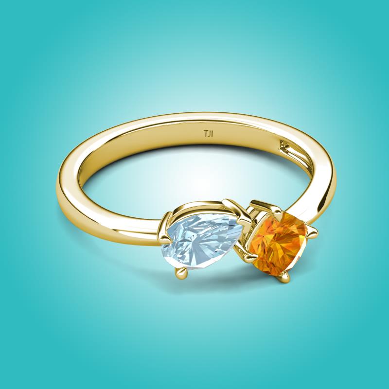 1.10 ctw Aquamarine Pear Shape 7x5 mm & Citrine Cushion Shape 5.00 mm with Prong setting Two Stone Duo Women Engagement Ring in 14K Yellow Gold More Details ...