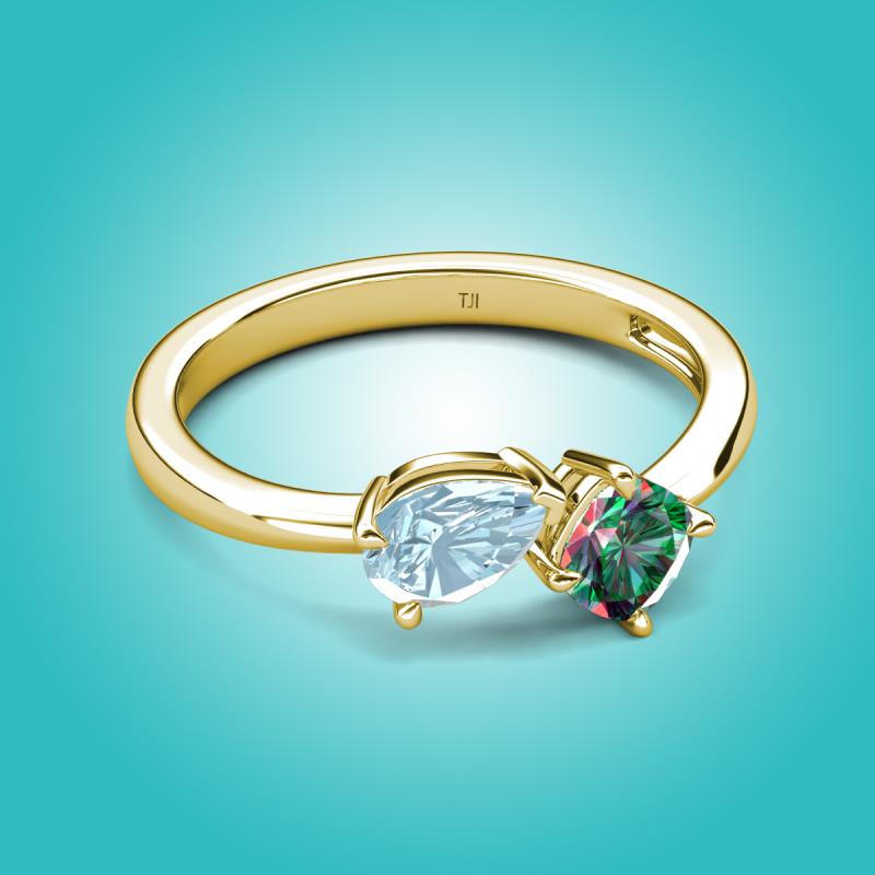 1.41 ctw Aquamarine Pear Shape 7x5 mm & Lab Created Alexandrite Cushion Shape 5.00 mm with Prong setting Two Stone Duo Women Engagement Ring in 14K Yellow Gold More Details ...