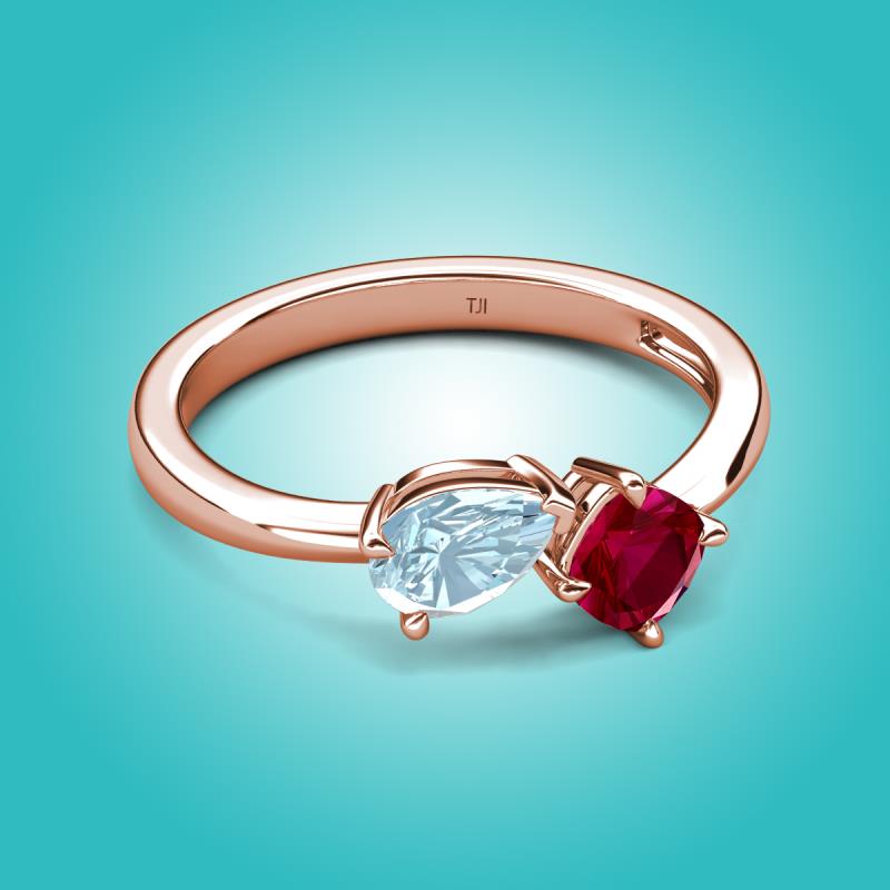 1.41 ctw Aquamarine Pear Shape 7x5 mm & Lab Created Ruby Cushion Shape 5.00 mm with Prong setting Two Stone Duo Women Engagement Ring in 14K Rose Gold More Details ...