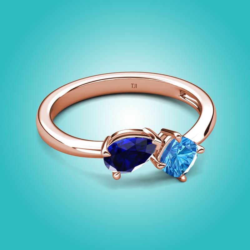1.65 ctw Blue Sapphire Pear Shape 7x5 mm & Blue Topaz Cushion Shape 5.00 mm with Prong setting Two Stone Duo Women Engagement Ring in 14K Rose Gold More Details ...