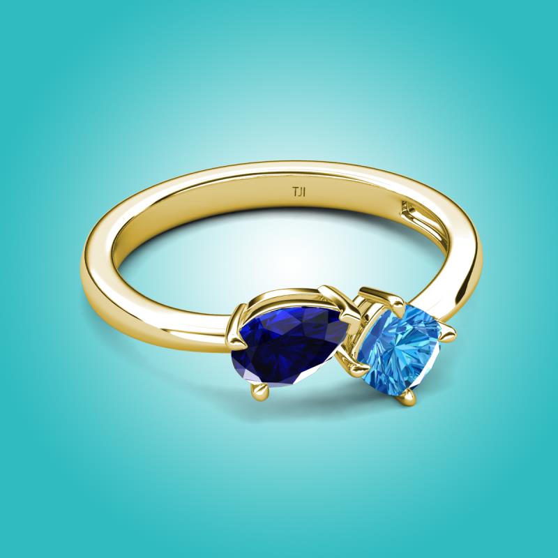 1.65 ctw Blue Sapphire Pear Shape 7x5 mm & Blue Topaz Cushion Shape 5.00 mm with Prong setting Two Stone Duo Women Engagement Ring in 14K Yellow Gold More Details ...
