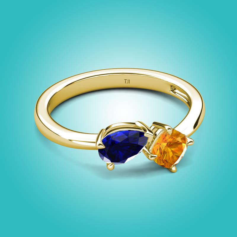 1.40 ctw Blue Sapphire Pear Shape 7x5 mm & Citrine Cushion Shape 5.00 mm with Prong setting Two Stone Duo Women Engagement Ring in 14K Yellow Gold More Details ...