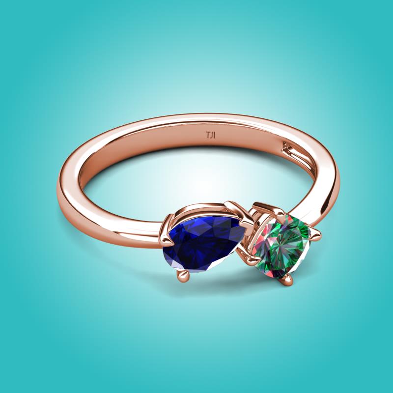 1.71 ctw Blue Sapphire Pear Shape 7x5 mm & Lab Created Alexandrite Cushion Shape 5.00 mm with Prong setting Two Stone Duo Women Engagement Ring in 18K Rose Gold More Details ...