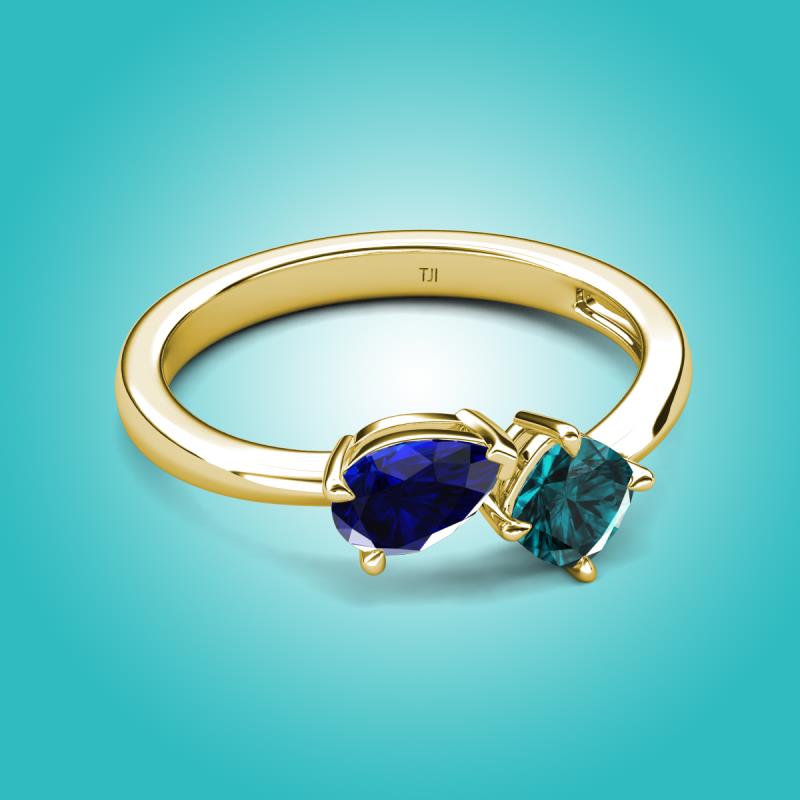 1.65 ctw Blue Sapphire Pear Shape 7x5 mm & London Blue Topaz Cushion Shape 5.00 mm with Prong setting Two Stone Duo Women Engagement Ring in 14K Yellow Gold More Details ...