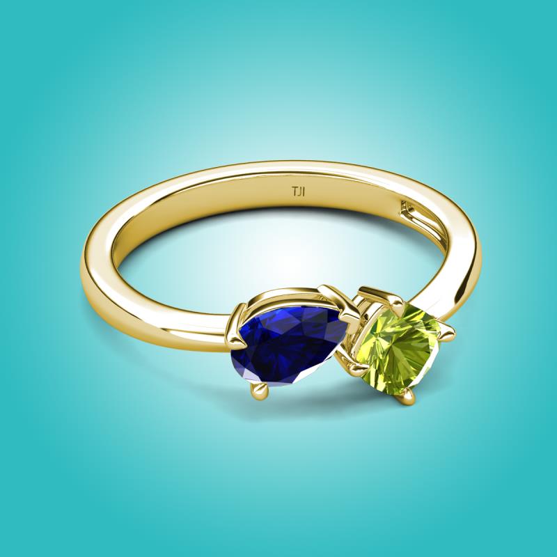 1.55 ctw Blue Sapphire Pear Shape 7x5 mm & Peridot Cushion Shape 5.00 mm with Prong setting Two Stone Duo Women Engagement Ring in 14K Yellow Gold More Details ...