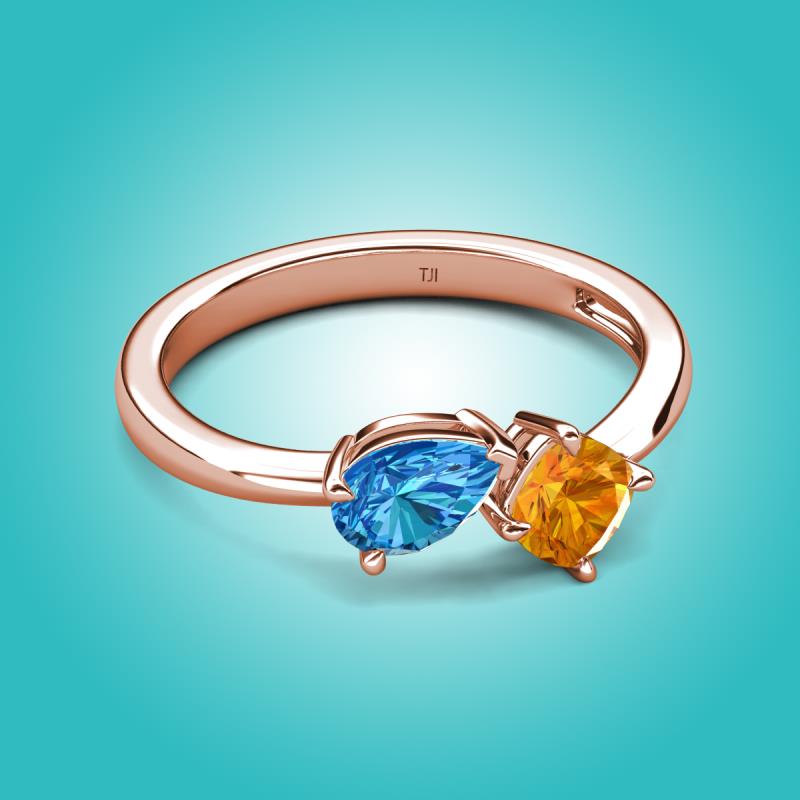 1.35 ctw Blue Topaz Pear Shape 7x5 mm & Citrine Cushion Shape 5.00 mm with Prong setting Two Stone Duo Women Engagement Ring in 14K Rose Gold More Details ...