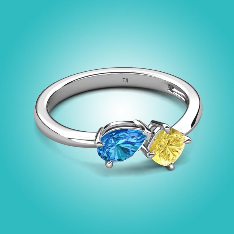 1.66 ctw Blue Topaz Pear Shape 7x5 mm & Lab Created Yellow Sapphire Cushion Shape 5.00 mm with Prong setting Two Stone Duo Women Engagement Ring in 14K White Gold More Details ...