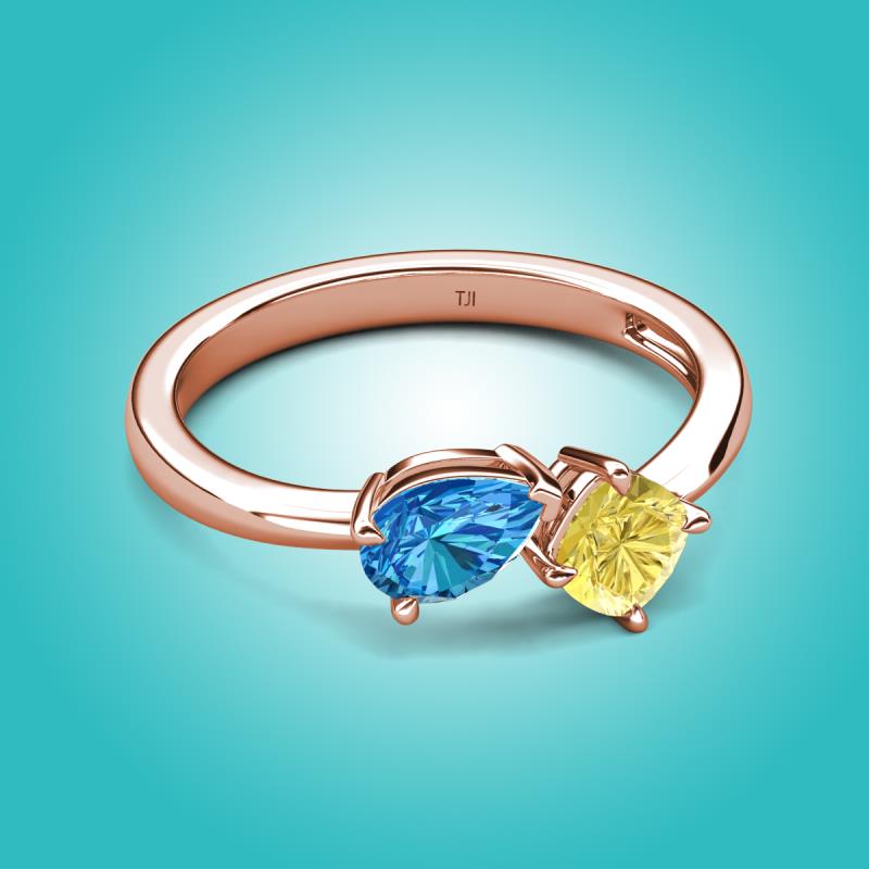 1.66 ctw Blue Topaz Pear Shape 7x5 mm & Lab Created Yellow Sapphire Cushion Shape 5.00 mm with Prong setting Two Stone Duo Women Engagement Ring in 18K Rose Gold More Details ...