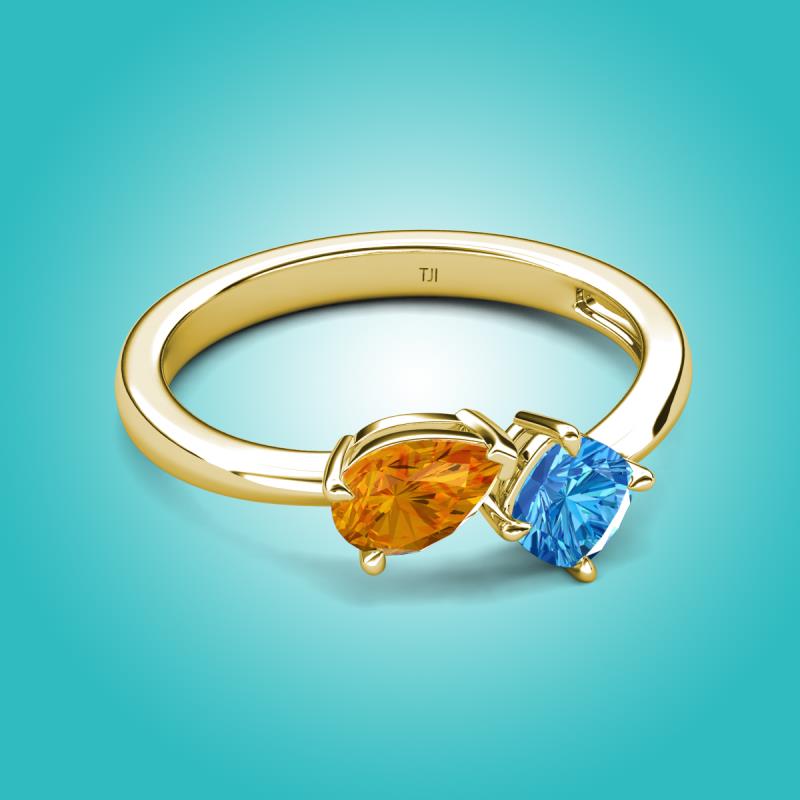 1.40 ctw Citrine Pear Shape 7x5 mm & Blue Topaz Cushion Shape 5.00 mm with Prong setting Two Stone Duo Women Engagement Ring in 14K Yellow Gold More Details ...