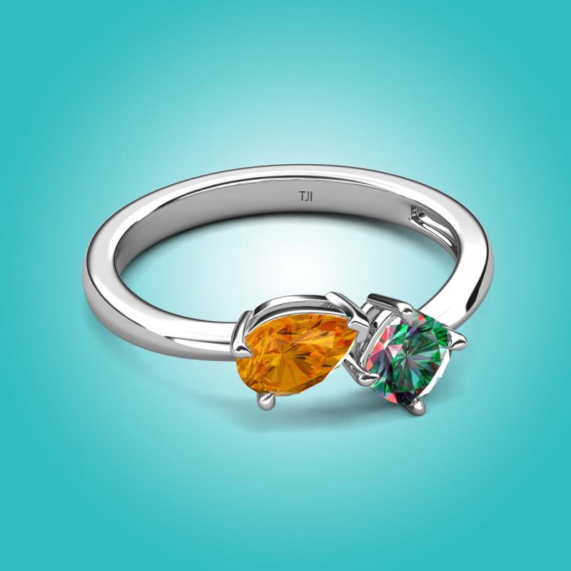 1.46 ctw Citrine Pear Shape 7x5 mm & Lab Created Alexandrite Cushion Shape 5.00 mm with Prong setting Two Stone Duo Women Engagement Ring in 14K White Gold More Details ...