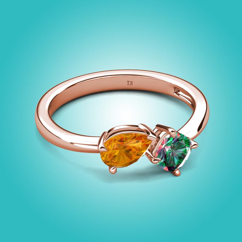 1.46 ctw Citrine Pear Shape 7x5 mm & Lab Created Alexandrite Cushion Shape 5.00 mm with Prong setting Two Stone Duo Women Engagement Ring in 18K Rose Gold More Details ...