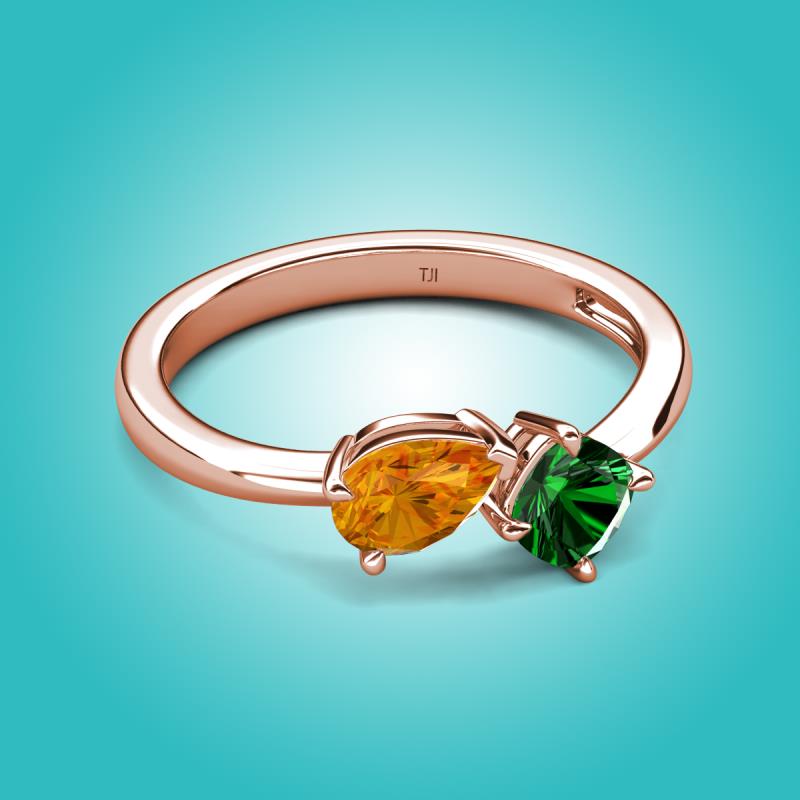 1.20 ctw Citrine Pear Shape 7x5 mm & Lab Created Emerald Cushion Shape 5.00 mm with Prong setting Two Stone Duo Women Engagement Ring in 18K Rose Gold More Details ...
