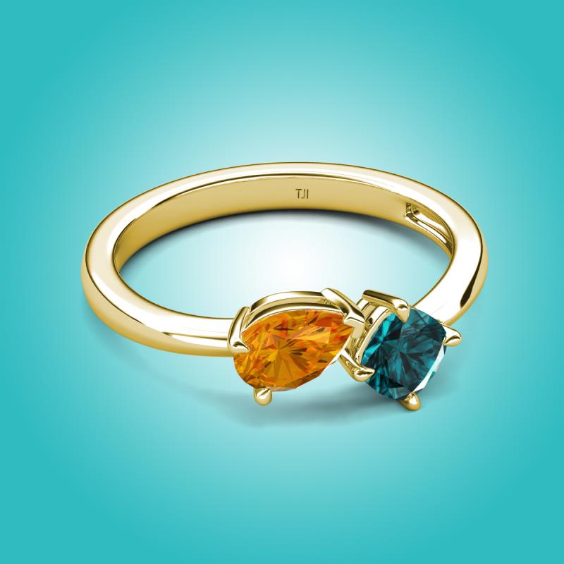 1.40 ctw Citrine Pear Shape 7x5 mm & London Blue Topaz Cushion Shape 5.00 mm with Prong setting Two Stone Duo Women Engagement Ring in 14K Yellow Gold More Details ...