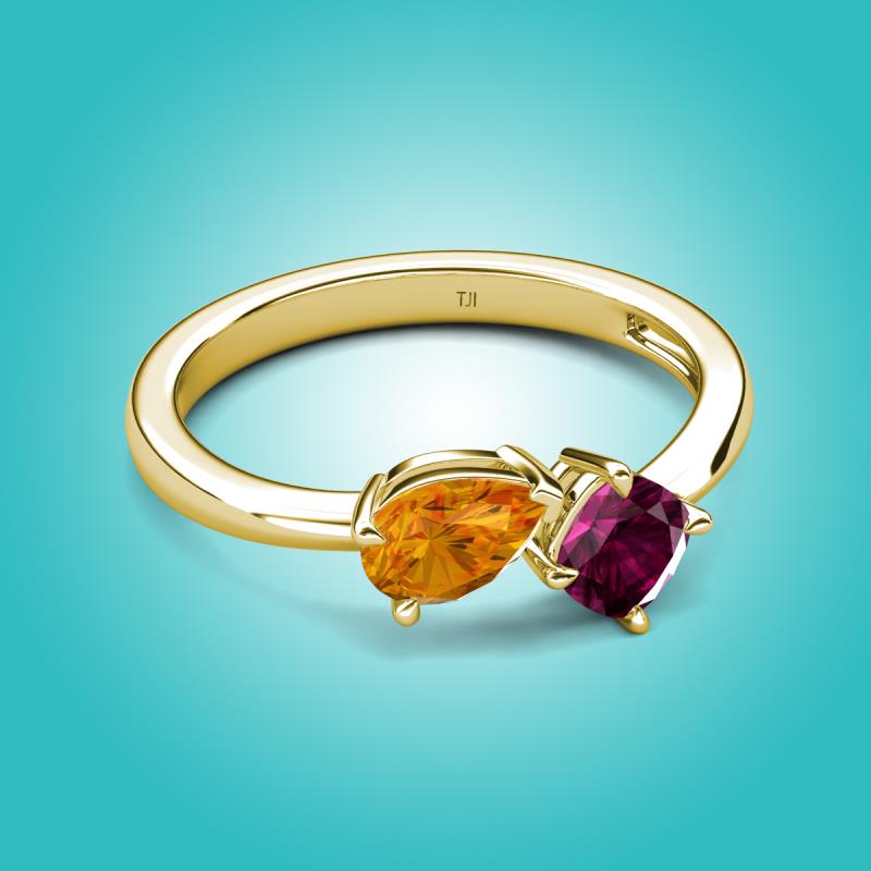 1.27 ctw Citrine Pear Shape 7x5 mm & Rhodolite Garnet Cushion Shape 5.00 mm with Prong setting Two Stone Duo Women Engagement Ring in 18K Yellow Gold More Details ...