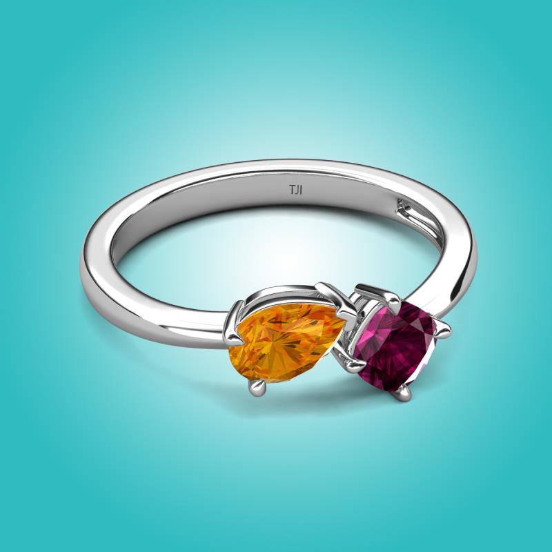 1.27 ctw Citrine Pear Shape 7x5 mm & Rhodolite Garnet Cushion Shape 5.00 mm with Prong setting Two Stone Duo Women Engagement Ring in Platinum More Details ...
