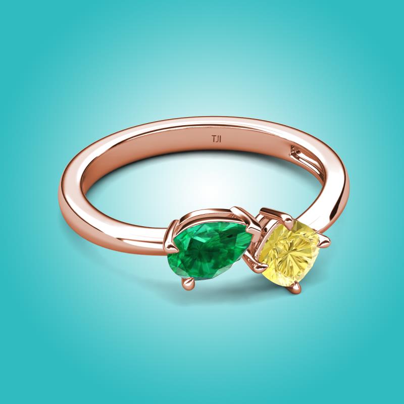 1.61 ctw Emerald Pear Shape 7x5 mm & Lab Created Yellow Sapphire Cushion Shape 5.00 mm with Prong setting Two Stone Duo Women Engagement Ring in 14K Rose Gold More Details ...