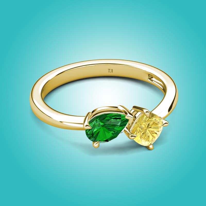 1.61 ctw Green Garnet Pear Shape 7x5 mm & Lab Created Yellow Sapphire Cushion Shape 5.00 mm with Prong setting Two Stone Duo Women Engagement Ring in 18K Yellow Gold More Details ...