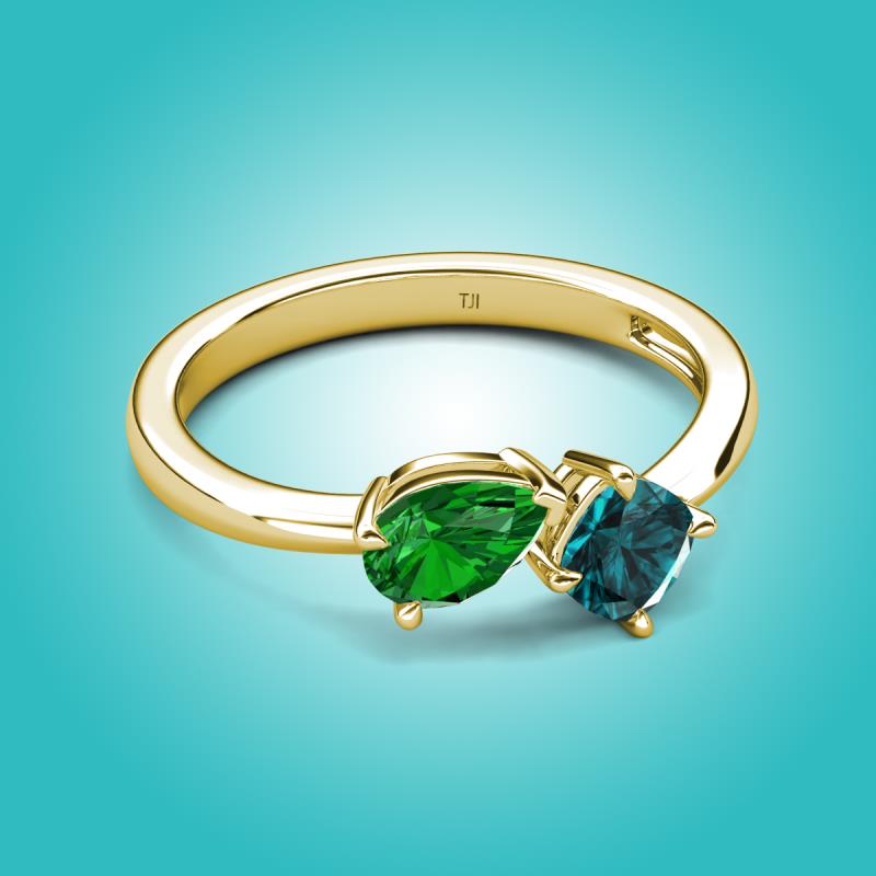 1.55 ctw Green Garnet Pear Shape 7x5 mm & London Blue Topaz Cushion Shape 5.00 mm with Prong setting Two Stone Duo Women Engagement Ring in 18K Yellow Gold More Details ...