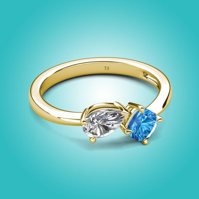1.50 ctw IGI Certified Lab Grown Diamond Pear Shape 7x5 mm & Blue Topaz Cushion Shape 5.00 mm with Prong setting Two Stone Duo Women Engagement Ring in 14K Yellow Gold More Details ...