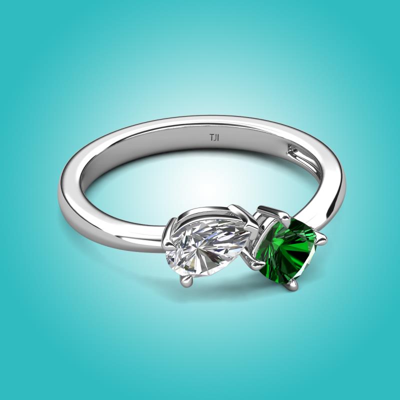 1.30 ctw IGI Certified Lab Grown Diamond Pear Shape 7x5 mm & Lab Created Emerald Cushion Shape 5.00 mm with Prong setting Two Stone Duo Women Engagement Ring in 14K White Gold More Details ...
