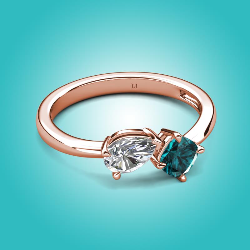 1.50 ctw IGI Certified Lab Grown Diamond Pear Shape 7x5 mm & London Blue Topaz Cushion Shape 5.00 mm with Prong setting Two Stone Duo Women Engagement Ring in 18K Rose Gold More Details ...