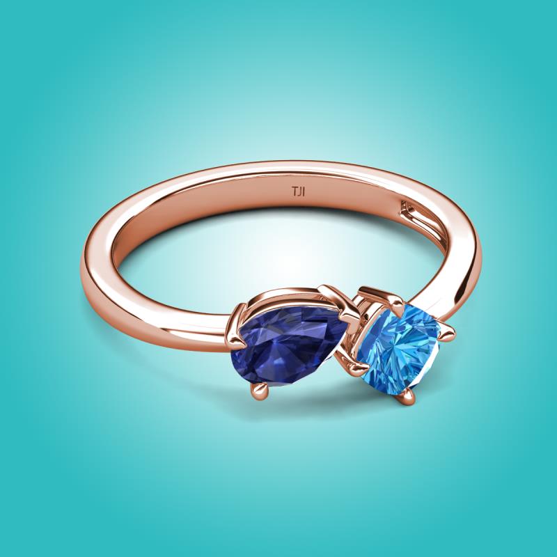 1.35 ctw Iolite Pear Shape 7x5 mm & Blue Topaz Cushion Shape 5.00 mm with Prong setting Two Stone Duo Women Engagement Ring in 14K Rose Gold More Details ...