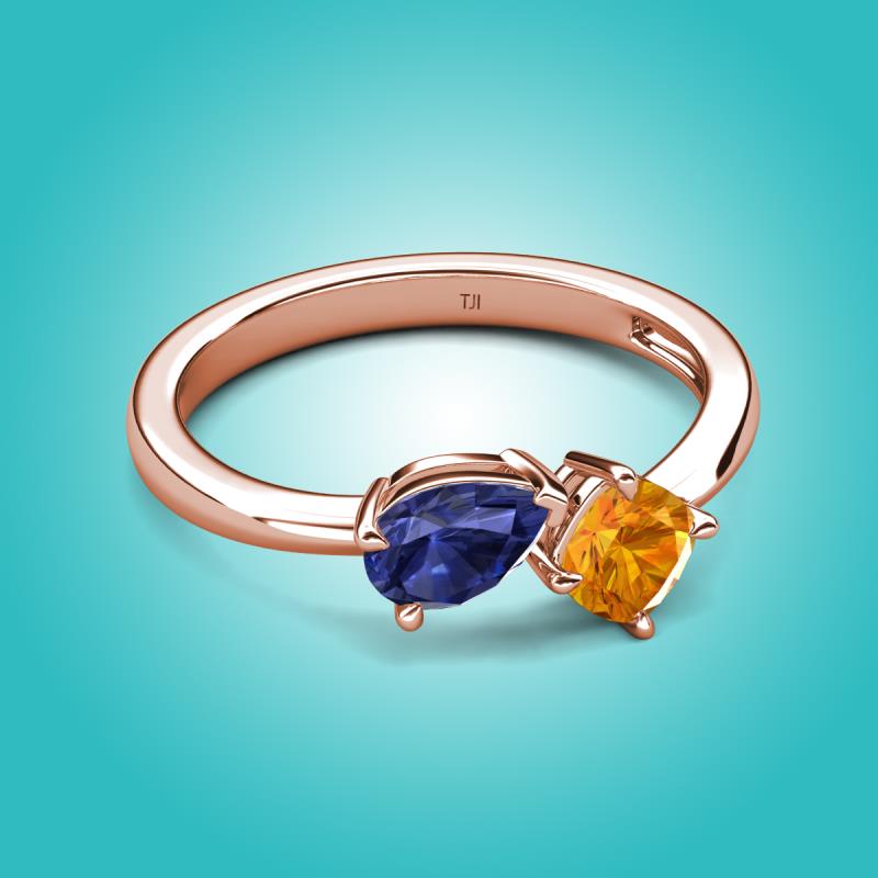 1.10 ctw Iolite Pear Shape 7x5 mm & Citrine Cushion Shape 5.00 mm with Prong setting Two Stone Duo Women Engagement Ring in 14K Rose Gold More Details ...