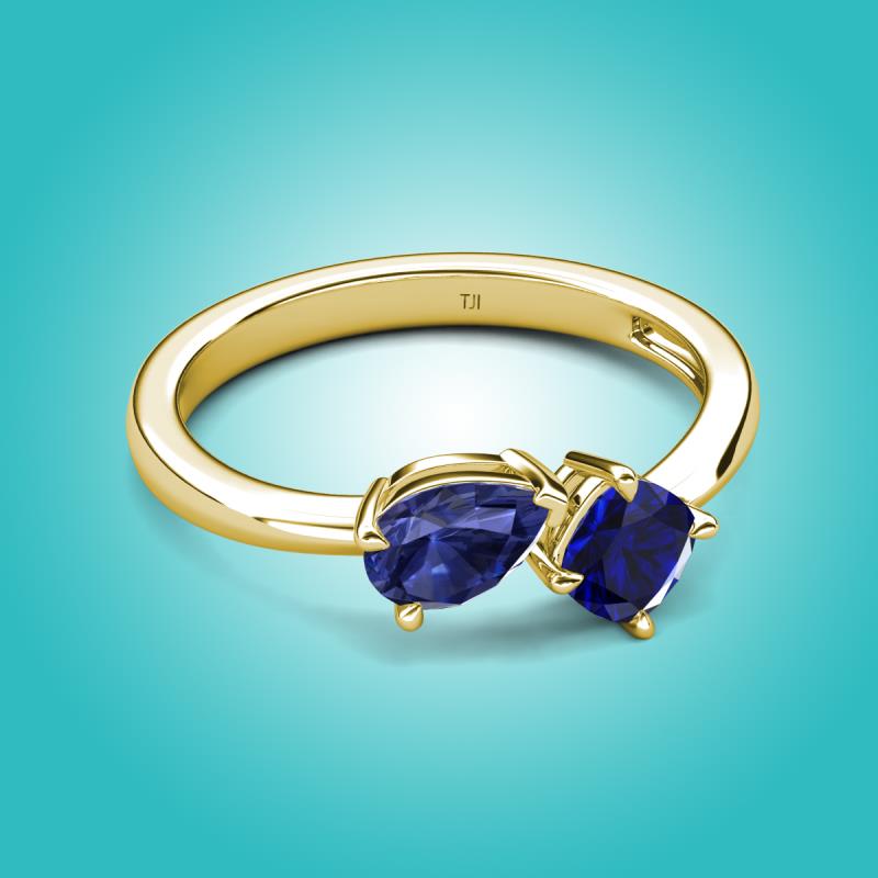 1.41 ctw Iolite Pear Shape 7x5 mm & Lab Created Blue Sapphire Cushion Shape 5.00 mm with Prong setting Two Stone Duo Women Engagement Ring in 14K Yellow Gold More Details ...