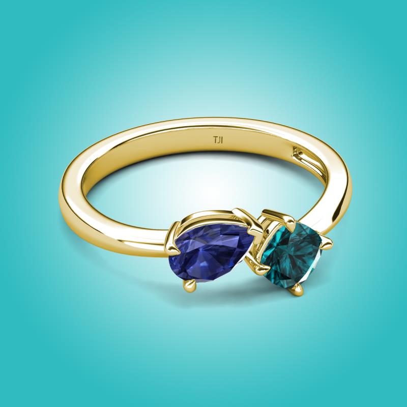 1.35 ctw Iolite Pear Shape 7x5 mm & London Blue Topaz Cushion Shape 5.00 mm with Prong setting Two Stone Duo Women Engagement Ring in 14K Yellow Gold More Details ...