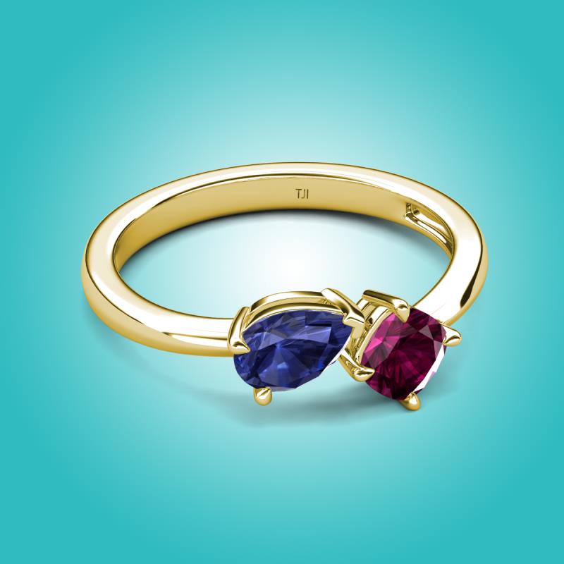 1.22 ctw Iolite Pear Shape 7x5 mm & Rhodolite Garnet Cushion Shape 5.00 mm with Prong setting Two Stone Duo Women Engagement Ring in 14K Yellow Gold More Details ...