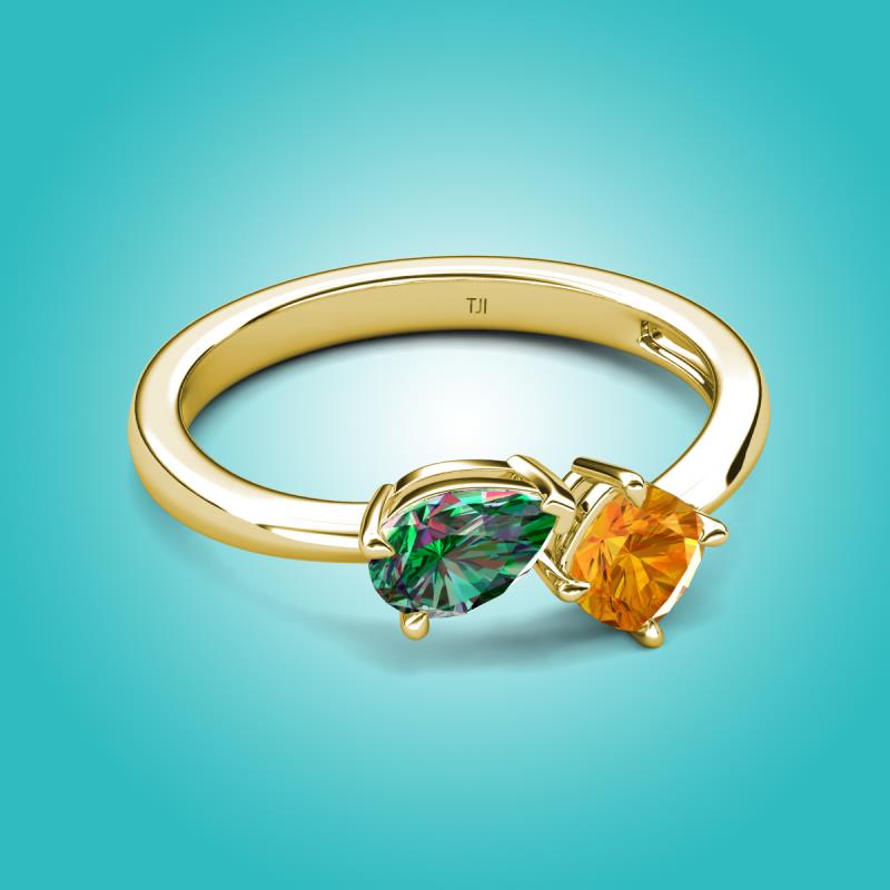 1.36 ctw Lab Created Alexandrite Pear Shape 7x5 mm & Citrine Cushion Shape 5.00 mm with Prong setting Two Stone Duo Women Engagement Ring in 14K Yellow Gold More Details ...