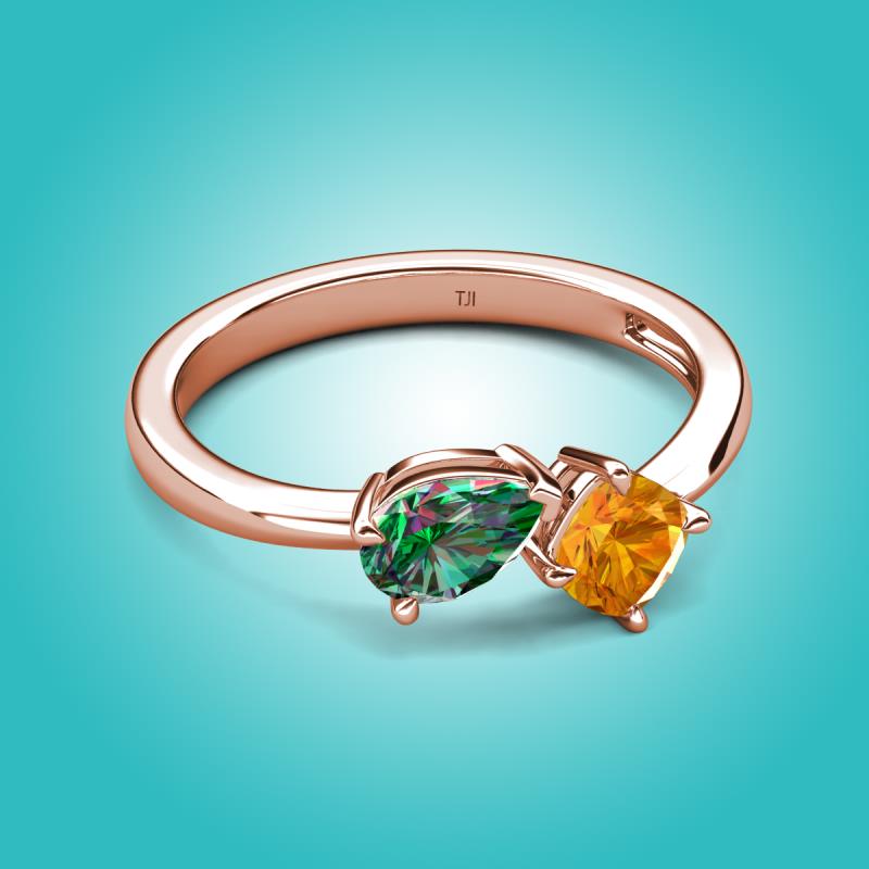 1.36 ctw Lab Created Alexandrite Pear Shape 7x5 mm & Citrine Cushion Shape 5.00 mm with Prong setting Two Stone Duo Women Engagement Ring in 18K Rose Gold More Details ...