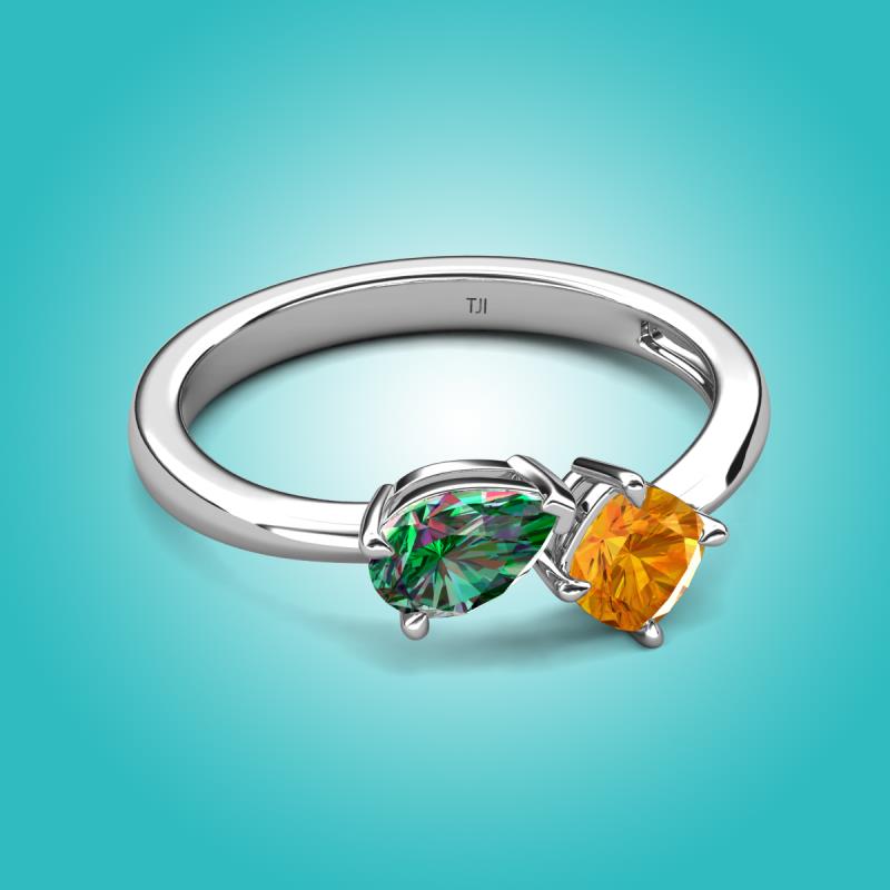 1.36 ctw Lab Created Alexandrite Pear Shape 7x5 mm & Citrine Cushion Shape 5.00 mm with Prong setting Two Stone Duo Women Engagement Ring in 18K White Gold More Details ...
