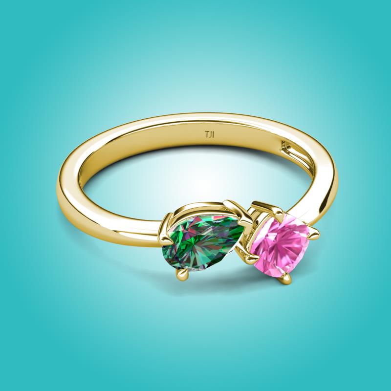 1.67 ctw Lab Created Alexandrite Pear Shape 7x5 mm & Lab Created Pink Sapphire Cushion Shape 5.00 mm with Prong setting Two Stone Duo Women Engagement Ring in 14K Yellow Gold More Details ...