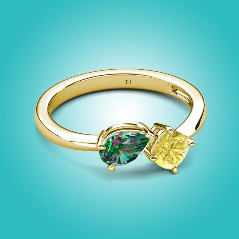 1.67 ctw Lab Created Alexandrite Pear Shape 7x5 mm & Lab Created Yellow Sapphire Cushion Shape 5.00 mm with Prong setting Two Stone Duo Women Engagement Ring in 14K Yellow Gold More Details ...