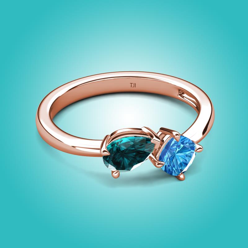 1.60 ctw London Blue Topaz Pear Shape 7x5 mm & Blue Topaz Cushion Shape 5.00 mm with Prong setting Two Stone Duo Women Engagement Ring in 18K Rose Gold More Details ...
