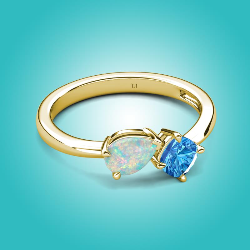 1.10 ctw Opal Pear Shape 7x5 mm & Blue Topaz Cushion Shape 5.00 mm with Prong setting Two Stone Duo Women Engagement Ring in 18K Yellow Gold More Details ...