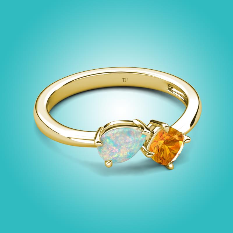 0.85 ctw Opal Pear Shape 7x5 mm & Citrine Cushion Shape 5.00 mm with Prong setting Two Stone Duo Women Engagement Ring in 18K Yellow Gold More Details ...