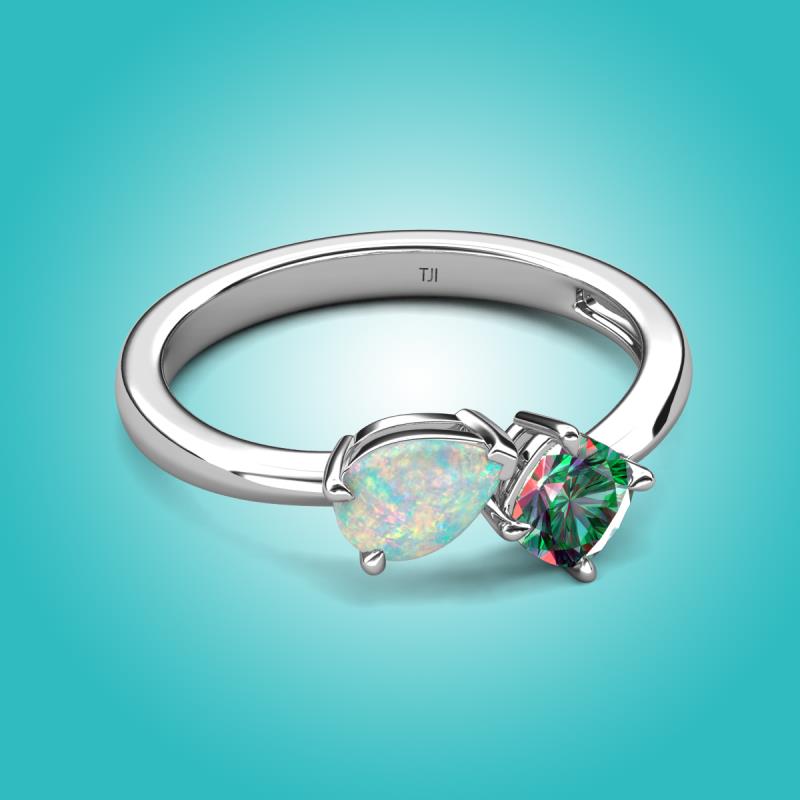 1.16 ctw Opal Pear Shape 7x5 mm & Lab Created Alexandrite Cushion Shape 5.00 mm with Prong setting Two Stone Duo Women Engagement Ring in Platinum More Details ...