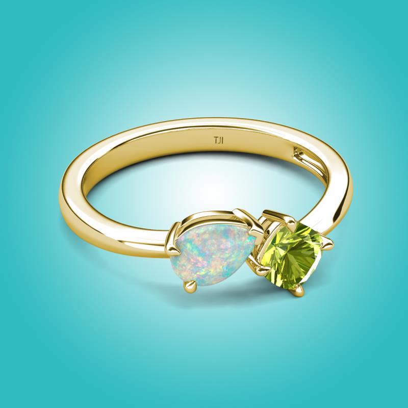1.00 ctw Opal Pear Shape 7x5 mm & Peridot Cushion Shape 5.00 mm with Prong setting Two Stone Duo Women Engagement Ring in 18K Yellow Gold More Details ...