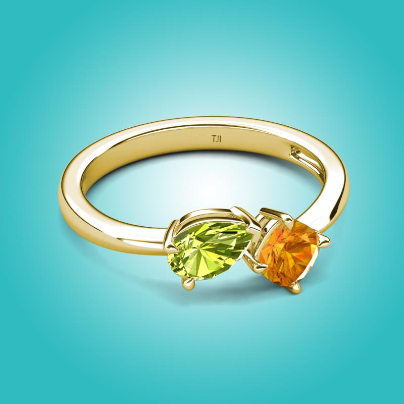 1.30 ctw Peridot Pear Shape 7x5 mm & Citrine Cushion Shape 5.00 mm with Prong setting Two Stone Duo Women Engagement Ring in 14K Yellow Gold More Details ...