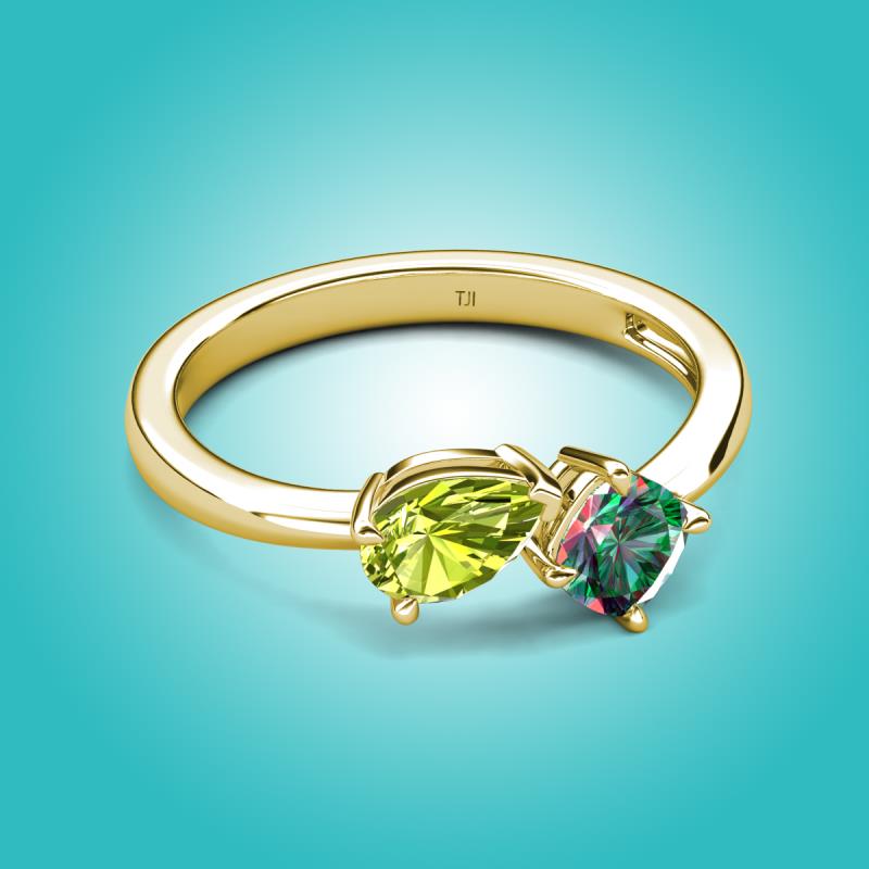 1.61 ctw Peridot Pear Shape 7x5 mm & Lab Created Alexandrite Cushion Shape 5.00 mm with Prong setting Two Stone Duo Women Engagement Ring in 14K Yellow Gold More Details ...