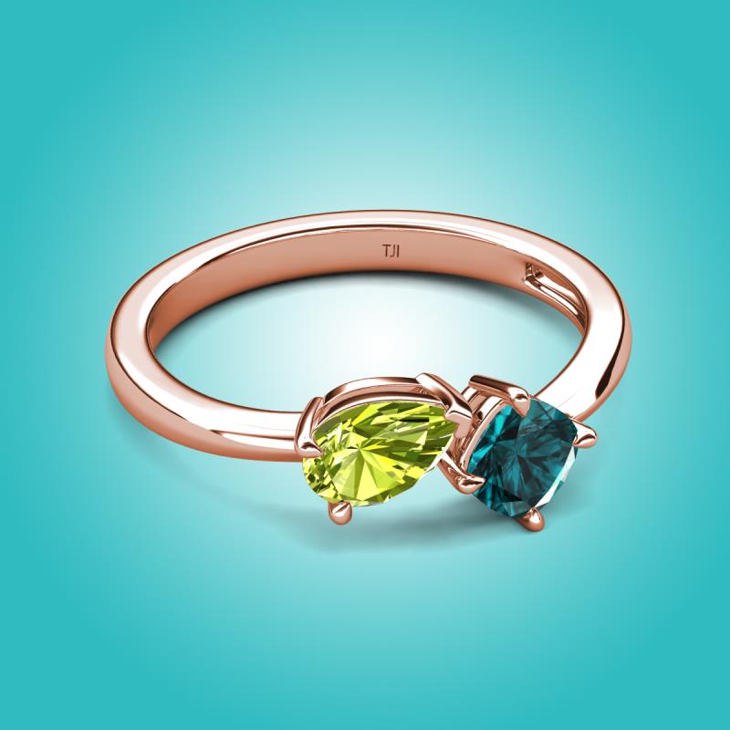 1.55 ctw Peridot Pear Shape 7x5 mm & London Blue Topaz Cushion Shape 5.00 mm with Prong setting Two Stone Duo Women Engagement Ring in 14K Rose Gold More Details ...