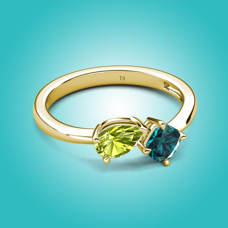 1.55 ctw Peridot Pear Shape 7x5 mm & London Blue Topaz Cushion Shape 5.00 mm with Prong setting Two Stone Duo Women Engagement Ring in 14K Yellow Gold More Details ...