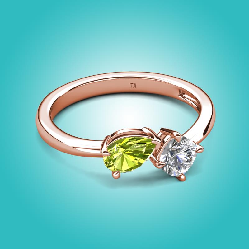 1.30 ctw Peridot Pear Shape 7x5 mm & Natural Diamond Cushion Shape 5.00 mm with Prong setting Two Stone Duo Women Engagement Ring in 18K Rose Gold More Details ...