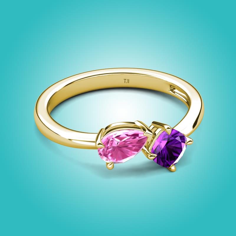 1.40 ctw Pink Sapphire Pear Shape 7x5 mm & Amethyst Cushion Shape 5.00 mm with Prong setting Two Stone Duo Women Engagement Ring in 14K Yellow Gold More Details ...