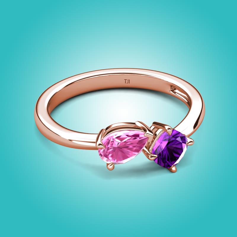 1.40 ctw Pink Sapphire Pear Shape 7x5 mm & Amethyst Cushion Shape 5.00 mm with Prong setting Two Stone Duo Women Engagement Ring in 18K Rose Gold More Details ...
