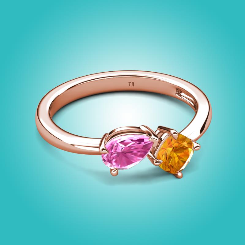 1.40 ctw Pink Sapphire Pear Shape 7x5 mm & Citrine Cushion Shape 5.00 mm with Prong setting Two Stone Duo Women Engagement Ring in 14K Rose Gold More Details ...