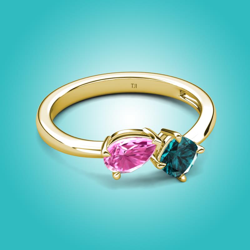 1.65 ctw Pink Sapphire Pear Shape 7x5 mm & London Blue Topaz Cushion Shape 5.00 mm with Prong setting Two Stone Duo Women Engagement Ring in 14K Yellow Gold More Details ...